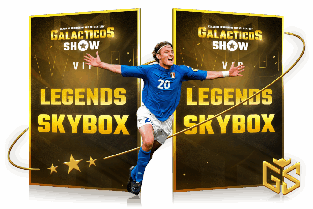 The Legends Skybox package is the most exclusive and private way to experience the Galacticos Show, created for those who value absolute comfort, discretion, and the highest standards. Your own 16-seater box with dedicated waiter service, unlimited top-class catering, and premium alcohol guarantee an unparalleled experience. A superb view of the pitch-from both the interior and the front seats-completes the atmosphere of a true football celebration.